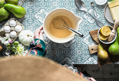 Nogle røreskåle er så flotte, at de også kan bruges til servering. Keramiske eller glaserede skåle i farverige designs kan gå direkte fra køkkenbord til spisebord og pynte i køkkenet, når de ikke er i brug.
